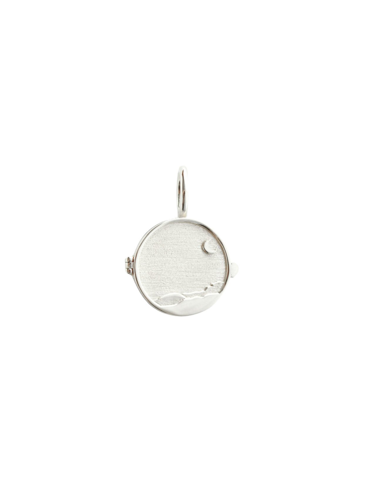 Una luna sospesa nel cielo e il profilo delle montagne adornano il ciondolo “Notte stellata” che custodisce al suo interno un segreto: una stella incisa dove poter proteggere i propri sogni.