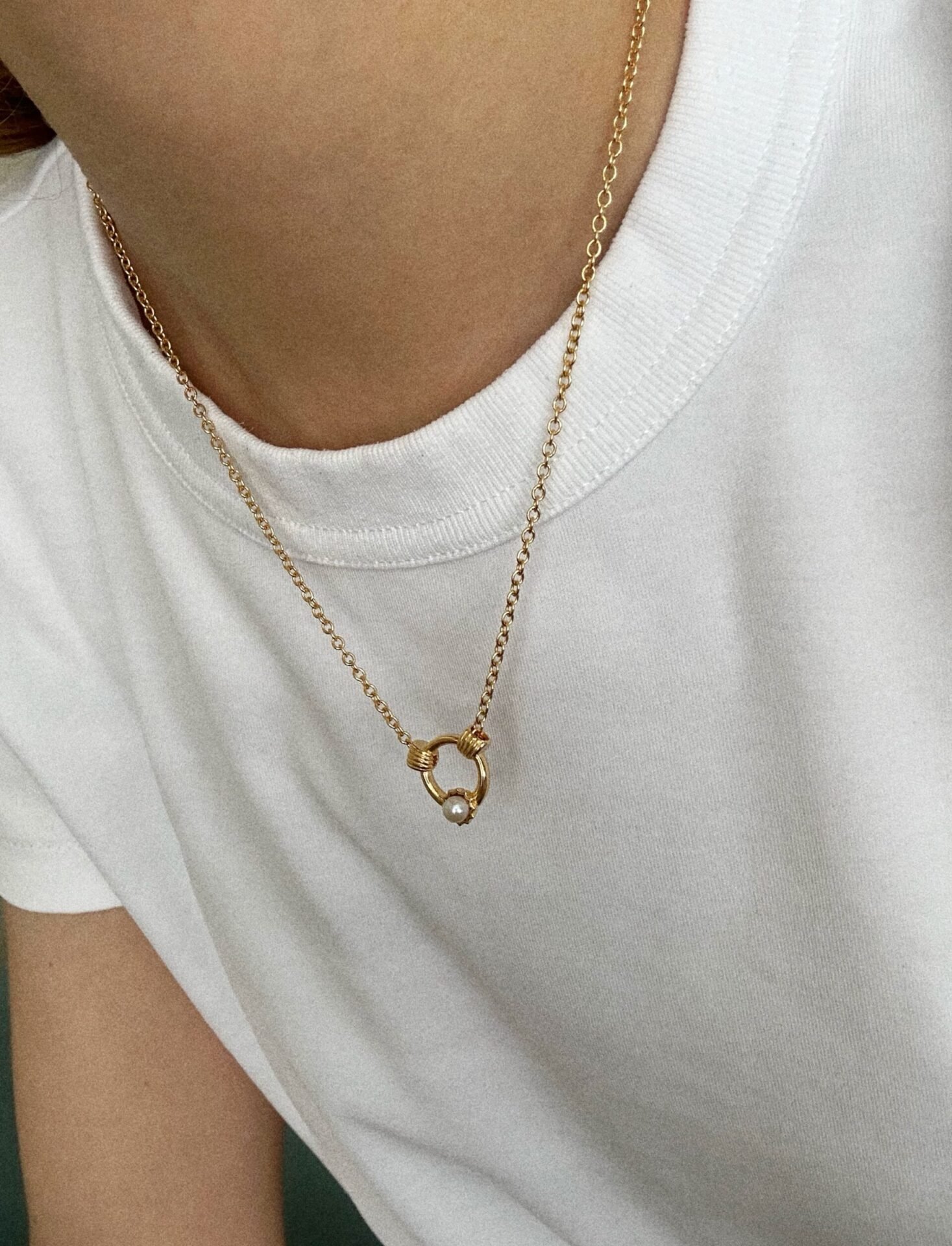 • perla d’acqua dolce. la lunghezza della collana è regolabile e varia tra i 45 e i 50 cm.